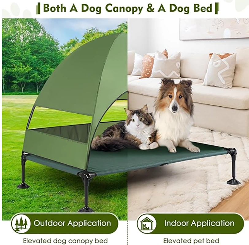 Sodda tal-klieb tal-qtates b'kanupew, sodda tal-klieb mgħollija aġġornata b'kanupew, sodda tal-klieb ta 'barra mgħollija li tista' tinġarr b'saqajn stabbli kontra ż-żlieq, kerrikot tas-sodda usa 'l-annimali domestiċi, sodod tal-klieb mgħollija għall-ikkampjar ta' klieb kbar, użu fuq ġewwa u barra.