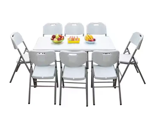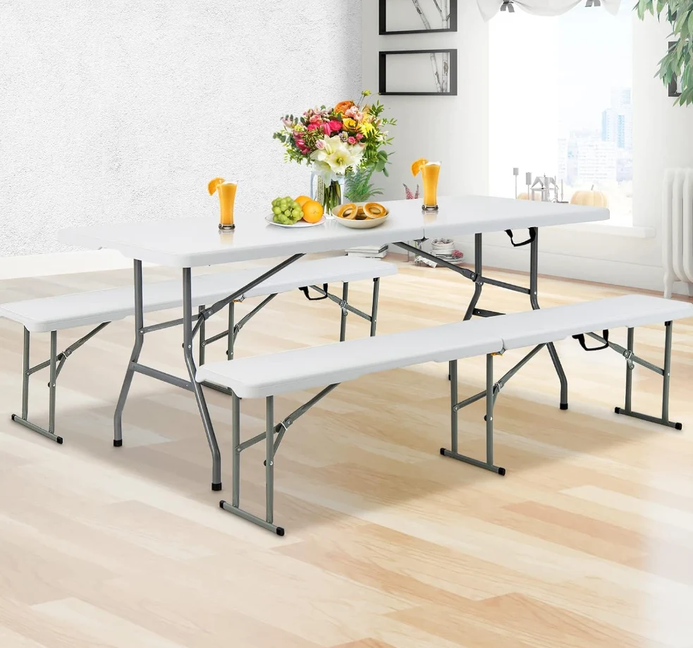 Tabella tal-ikkampjar ta 'barra ta' kwalità għolja, tabella bajda bajda tal-pikniks rettangolari tal-plastik li tiwi tabella tal-ikkampjar ta 'barra, li tipprovdi spazju spazjuż biex iżżomm ikel, deżerti, xorb, jew snacks. Din il-mejda li tiwi tista 'takkomoda madwar 8 persuni biex tiġbor madwar għal ikla tal-familja jew pranzu tal-festa. U l-irkejjen kollha tal-parti ta 'fuq tal-mejda huma ttundjati biex jipprevjenu korriment aċċidentali.