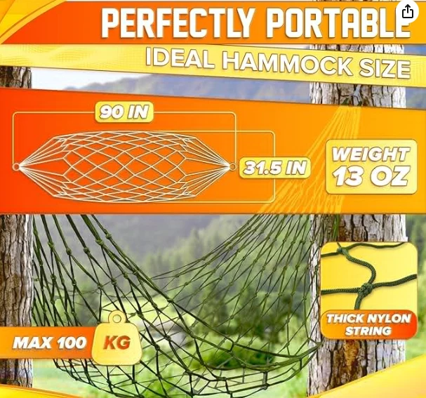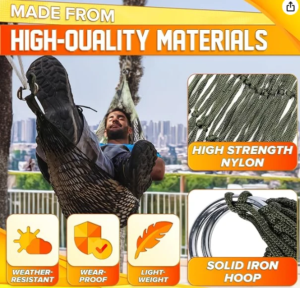 HAMOCK HANDING HIKING, dawn il-hammock tal-korda tan-najlon għandu kapaċità għolja li ġġorr it-tagħbija. Dawn il-hammock tal-ħabel tan-najlon huma perfetti għal ġewwa u barra minħabba durabilità għolja u reżistenti għall-ilbies