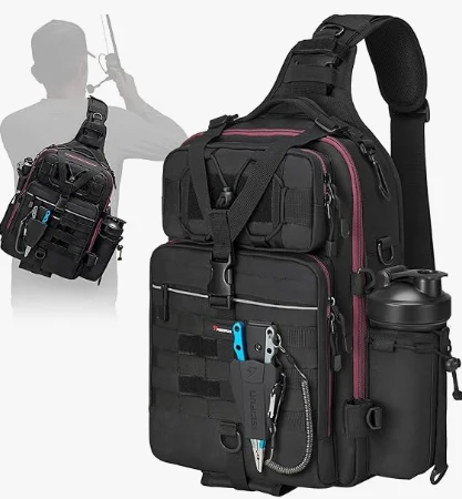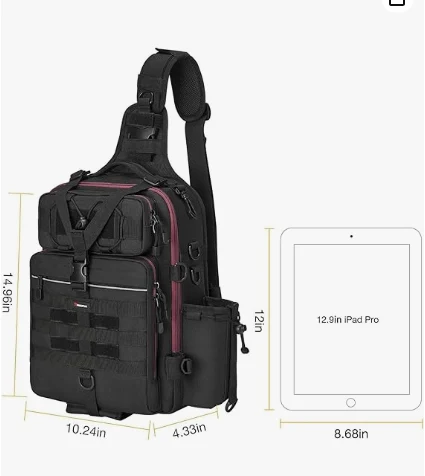 Borża tas-sajd fil-beraħ, borża ta 'l-indirizz tas-sajd magħmula b'tagħmir high-end, id-drappijiet tagħna ta' 1000d b'densità għolja tan-najlon huma reżistenti għall-ilma u reżistenti għall-brix. Il-bokkli tal-kam tagħna u l-SBS zips huma indestructible u reżiljenti