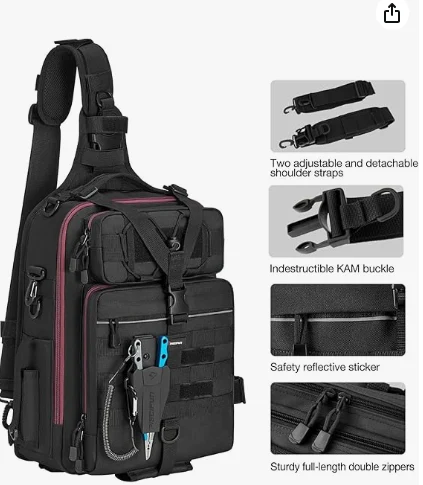 Ċineg ta 'l-ispalla li jistgħu jinqalgħu jagħmluha faċli biex tuża din il-borża bħala borża ta' l-ispalla, backpack, ħendbeg, borża tas-sider, borża ta 'l-indirizz tas-sajd, jew borża li tivvjaġġa. B'żewġ ċinturini tal-virga biex iżommu l-vireg tiegħek, it-tul taċ-ċinga ewlenija jista 'jiġi estiż sa 51.2' ', filwaqt li ċ-ċinga assoċjata tista' tiġi estiża għal 36.2 ''
