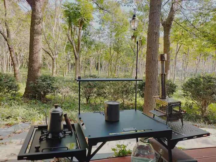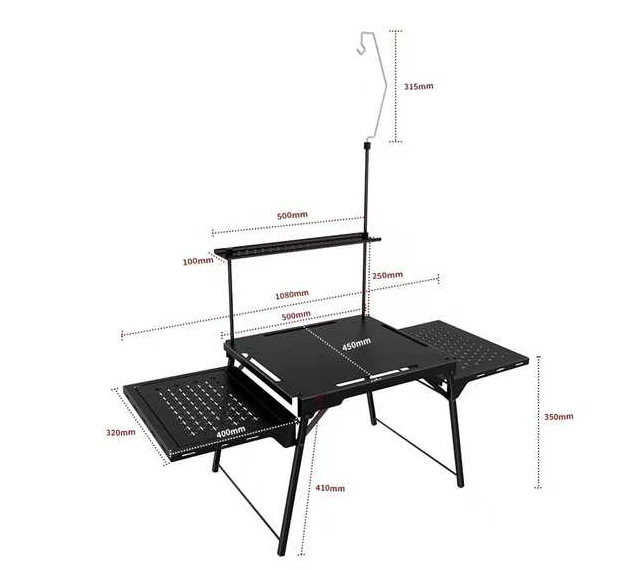 Tabella tal-ikkampjar tal-ħadid li tiwi portabbli, pjattaforma tal-mejda tal-pranzu hija magħmula minn partijiet ta 'fuq, tan-nofs u t'isfel, bi spazju suffiċjenti għall-ħażna ta' kull tip ta 'oġġetti tal-mejda, ikel, u kondimenti.