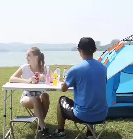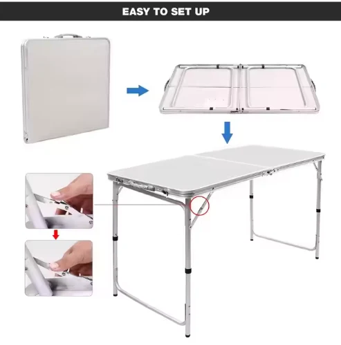 Tabella tal-aluminju li tiwi portabbli, għandha użi multifunzjonali, kemm ġewwa kif ukoll barra, inkluża mejda tal-pikniks, mejda tal-bajja u mejda tal-kċina għall-ikkampjar, li jintużaw għall-ikkampjar, bajja, turiżmu, avvenimenti sportivi, RV barra u sajd.
