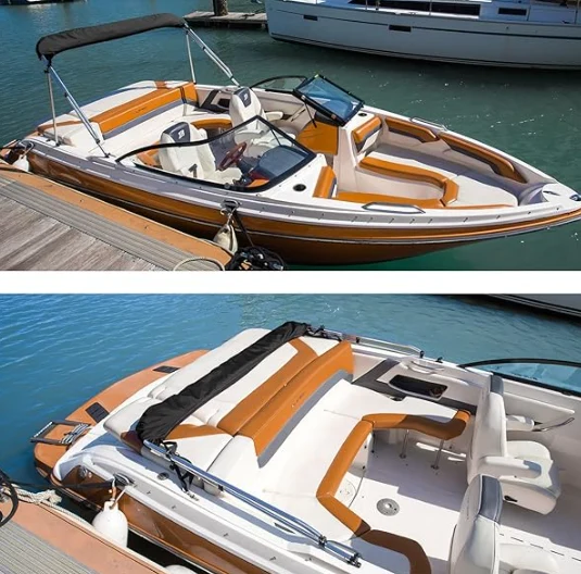 Top tal-Bimini tad-Dgħajsa Stainless, magħmula minn kanvas tal-poliester tal-Grad 600D tal-Baħar b'kisja doppja PU, il-but tal-ħażna tagħna jipprovdi protezzjoni tajba mix-xemx, l-ilma baħar, ix-xita u t-trab.