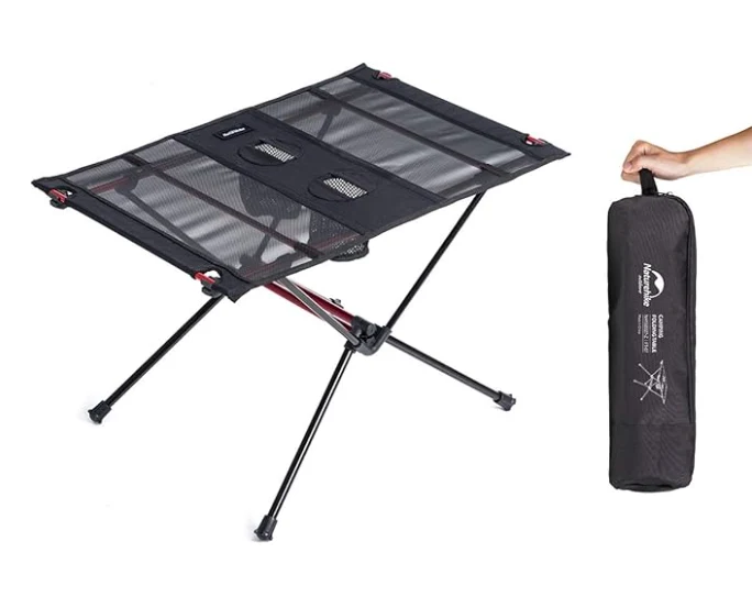 Din il-mejda tal-ikkampjar li tiwi tights biss 1.6 lbs u tiġi b'borża tal-ġarr. Id-daqs tat-tiwi huwa 16.9 "x 4.5". It-tabella portabbli hija ħafifa u kompatta biżżejjed biex iġġorr kullimkien.